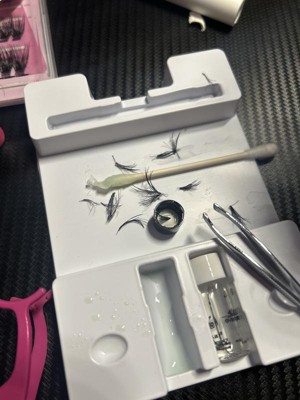 I never used lash clusters before this and it was super hard for a beginner. It was super hard to put in the lastes with the way the tweezers were shaped and how small the lashes were. The glue is like super glue. It turns white when it drys and it burns really bad and my eye started watering making it even harder. I tryed to take it off with the remover and it didn't help all it did was make my eye all red and irritated. They pulled out my natural lashes when I got a chance to take them off. The only good thing was they looked good and lasted a while. I will not be repurchasing.
