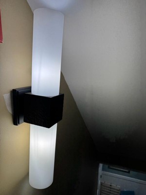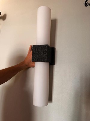 [This review was collected as part of a promotion.] Very sleek, modern design, sturdy high quality construction, and soft diffused light the opal etched glass shades. Very easy wall mount installation. Just make sure you have enough room above the light. The light is 12 inches tall from center mounting point (24” overall) and could hit your ceiling if you don’t have enough room.