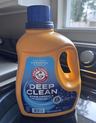 - 102 fl oz bottle of ARM & HAMMER Deep Clean Stain Formula Liquid Laundry Detergent Sparkling Clean Scent, powered by OxiClean Max Force Stain Fighters