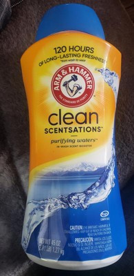 I bought the Arm & Hammer Clean Scentsations Purifying Waters at my local grocery store on sale. It smelled pretty good through the plastic bottle, so I figured why not try it. I had been using another brand of a similar scent that was more expensive. The scent is fairly light, I prefer a little stronger scent. The scent barely lasted a few days on the clothes put away in my dressers and closets (the other brand scent lasted many months and longer). The really only positive things were where they are in crystal form and not beads, the product does dissolve completely. Pro: dissolved completely, no residue on clothes or washer drum. Cons: scent is too light, scent doesn't last but for a few days, not worth the price