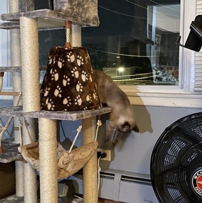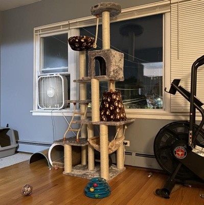 my cats love their new tower they love they have lots of places to scratch the posts and lots of places to sleep and play in i would recommend it for anyone with multiple cats