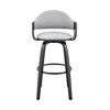 The Daxton 26" Gray Faux Leather and Black Wood Bar Stool will complement the existing decor in your home and help elevate it to the next level. The Daxton features a 360-degree swivel function that allows you to keep the conversation going in every direction. The Daxton is also crafted with a ring footrest - meaning you can relax your feet regardless of the direction you decide to turn! The plush seat cushion is padded with high-density foam that will provide you with immense comfort. The Daxton is available in your color choice of Gray, cream, or brown faux leather with walnut wood or Gray faux leather with black wood. Product Dimensions: W:20 x D:20 x H:36 x SH:26