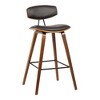Whether drawn up to a sleek kitchen island for a breakfast nook or rounding out your home bar with a perfect perch, a bar stool like this is a versatile seating solution with sleek modern style. The Armen Living Fox 25.5" Counter Height Brown Faux Leather and Walnut Wood Mid-Century Modern Bar Stool is a sophisticated and functional modern piece certain to enhance the aesthetic of any style home or apartment. The high-density foam cushioned back, and seat will allow endless hours of entertaining or lounging. The curved wood medium high back with padded support is ideal for posture alignment and an unmatched support for days on end. The foundation of the product is supported by wood and steel footrest for a chic and stylish aesthetic without comprising practicality and functionality of this item. The Mid-Century Modern style silhouette gives you a timeless look with the durability to last for many years to come. Available in your choice of a 25.5” or 28.5” seat height, you can easily incorporate this stool into your kitchen, dining room, home bar, or office! The Fox Faux Leather and Wood Bar Stool is available in your choice of a black wood finish with black or gray faux leather upholstery or a walnut wood finish with cream, brown, or gray faux leather upholstery.