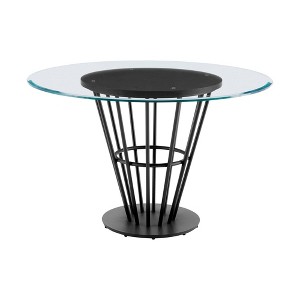 Armen Living Veronica Round Iron Base with Panel and Glass Tabletop Dining Table Black/Walnut