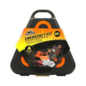 Includes: Multi-Tool, Carrying Bag, Heavy Duty Booster Cables, Poncho, Reflective Triangle, Gloves, First Aid Supplies