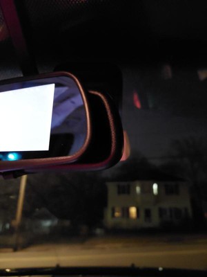 [This review was collected as part of a promotion.] I love how large this mirror is. It's larger than the one equipped with my vehicle. I thought the screen would be small but it's clear enough for you to see what's there. I also love that I don't have anything s as trachee to the windshield itself. I already have a backup camera that's built into my car so I don't use it for that but I like that I can use the rear camera to show what's behind me without connecting the wire to the light wires. I am quite surprised with the quality of this product!