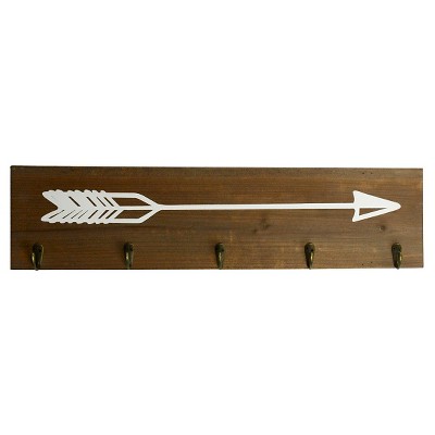 Give your kiddos a space of their own to hang up their baseball hats, necklaces or scarves with this Arrow Plaque Wall Mounted Hook Rack from Pillowfort™. This sturdy wooden hook rack with five hooks will help keep your child's belongings from getting stepped on or lost. Whether you're looking for a cute and functional piece of wall decor for your child's room or just want to keep it more organized, this neutral arrow printed hook rack is perfect for any child's room.