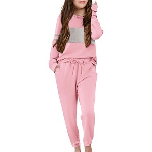 - Features: Girls classic loungewear set design,long sleeve pullover tops with color block crewneck,drawstring elastic waistband sweatpants with functional pocket.These are the highlights of this 2 piece outfits and bring a fashion and casual look,which are easier to catch her eyes.