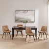 - Comfortable Upholstery: Upholstered in high-quality faux leather, the chairs offer both durability and style. The striped suture thread adds a subtle yet stylish detail that enhances the overall design and provides a refined look.