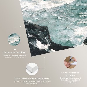 - Real Pine Wood: Hand-stretched over a sustainably-sourced 1.5-inch thick wood inner frame. This gallery-wrapped canvas will add a modern sophistication to any room with its frameless look.