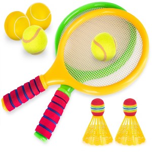 You’ve just found an instant family favorite! Meet the reason your brood will be spending a lot more time outdoors - our mood-brightening badminton set. Whether you’re in the backyard, out in the park, camping in the wilderness, or unwinding at the beach, this kit keeps both kids and adults occupied for hours. You’ll receive 2 rackets, 2 birdies, 2 soft balls, and 2 tennis balls. Place the accessories in the included mesh bag for easy storage and portability. Great Gift Idea Shopping for a birthday gift that will make that special day one to remember? A holiday present that promises nothing but grins? This badminton racket set is just what you need to blow that little one away! It’s great for kids ages 4+ and comes with all the accessories to fuel excitement. Keep the family entertained for hours without having anything to lose!