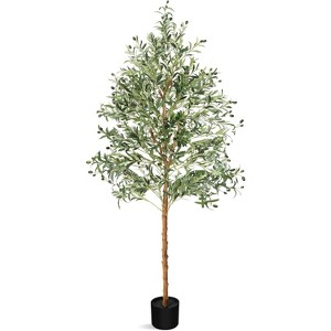 Artificial Olive Tree 7FT Tall Faux Olive Tree for Home Office Decor Fake Olive Tree with Artificial Fruits and Leaves with Real Hay
