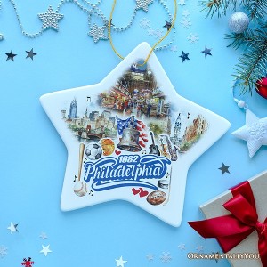 Artistic Philadelphia Handcrafted Ceramic Ornament, Vintage Pennsylvania Souvenir Gift and Christmas Tree Decor, Star
