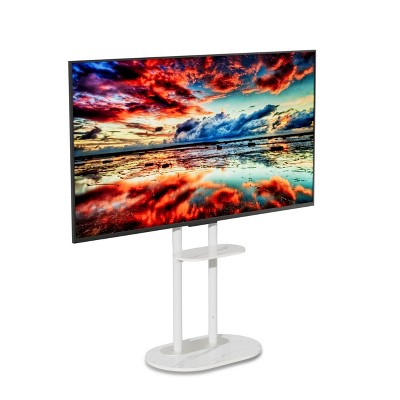 Elevate your space with this sleek, freestanding TV stand! Designed for 40-75" TVs up to 40kg, it features a stone composite shelf and steel dual poles for ultimate stability. No wall drilling needed¡ªperfect for homes, offices, or commercial spaces. Adjustable height and minimalist black/white design blend seamlessly with any decor. Includes VESA compatibility and all hardware. Enjoy luxury, durability, and effortless style without compromising on quality.