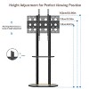 Heavy Duty Construction - Our TV stand is constructed of high-grade cold roller steel, which is built to last, ensures its stable performance and robust durability, harder and stronger, more resistant to deformation and tension breaking, with dual support poles, measuring 5cm in diameter of each, provide sturdy support for the TV’s safety