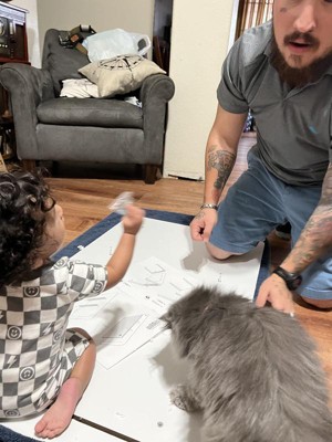 A: Hi,Thanks for reaching out. The table comes with an 18" wide paper roll. Hope this helps! - Wildkin Customer Experience