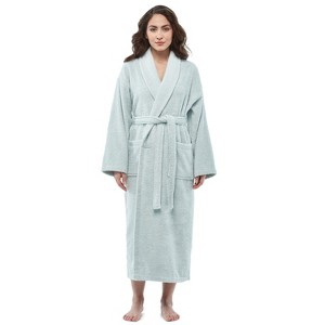 Indulge in the ultimate comfort with our Women's Turkish Cotton Bathrobe, featuring a non-hooded shawl collar design that exudes elegance. This terry cloth robe is crafted from high-quality, premium cotton, boasting an extra-long length for added coziness. Made from Oeko-Tex Certified 100% high-grade cotton with long fibers sourced from the Aegean region of Turkey, this robe is designed for both luxury and practicality. The non-hooded model showcases single-ply loops both inside and out, ensuring high absorbency and quick drying, while the breathable cotton construction keeps you comfortable all day. Unique to Turkish cotton, this robe becomes softer with every use, making it an essential addition to your bath or loungewear collection. It features functional patch pockets on both sides for easy storage of your essentials, while the self-fabric belt with two loops allows for a customizable fit. Versatile and functional, this robe is ideal for various occasions'use it as a maternity nursing robe, bridesmaid's gift, travel robe, housecoat, or even for lounging by the hot tub, beach, or sauna. It's suitable for couples, juniors, and teens alike. Available in a variety of colors and sizes, this robe combines style and practicality, making it perfect for anyone seeking a touch of luxury in their daily routine. Experience the softness of Turkish cotton and embrace the comfort of this elegant robe today! Product Care: Machine wash with like colors, tumble dry on low heat, and no ironing needed.