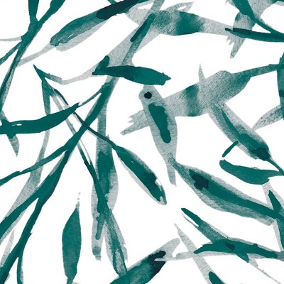 Tempaper's Watercolor Leaves peel and stick wallpaper features an artistic, nature-inspired design of hand painted watercolor leaves. The fluid, painterly strokes of the foliage green leaves against a teal backdrop give it an organic, free-flowing feel, evoking a sense of calm and tranquility that's ideal for bedrooms, living rooms, kids' spaces or even home offices.