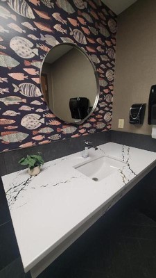[This review was collected as part of a promotion.] We love the fun element this wallcovering added to our commercial bathroom at our workplace!