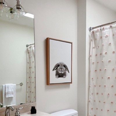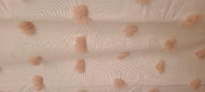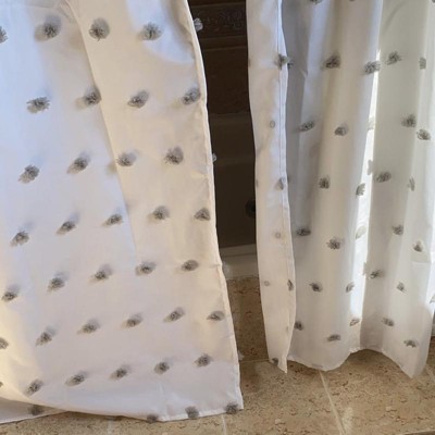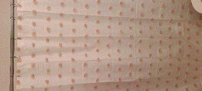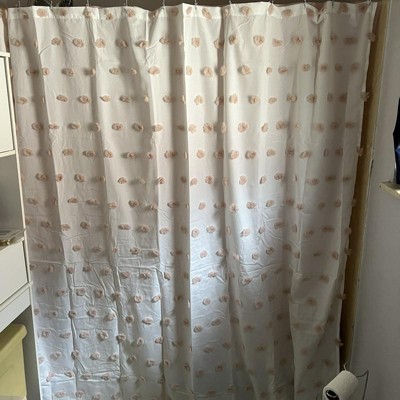 This shower curtain was exactly what my small guest bath needed. A simple and bright shower curtain that was not boring. I purchased the blush/white, and the poofs of textured blush dots add interest and texture.