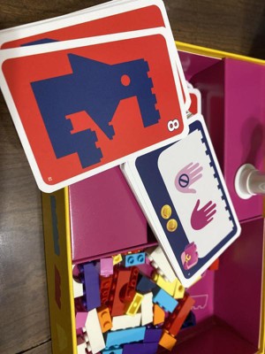 Oh this was so much fun to play with my kids. Trying to explain to each other on trying to figure our the shape on the card. Each card tells you the amount of legos you need & you have to explain to your partner. It's so much fun!