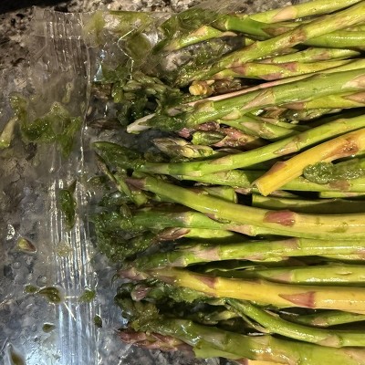 The asparagus was slimy & rotten. The tips were just mush. Could see it right through the package that it was bad & rather disgusting looking. There was still time on the BB date but this product should not have been sold