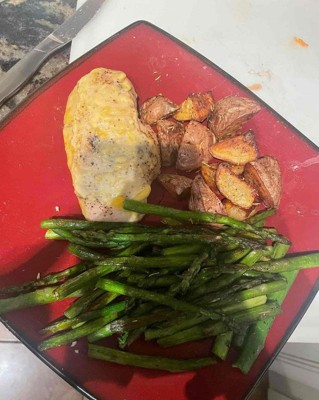 [This review was collected as part of a promotion.] This asparagus was fresh, delicious and easy to make. It was perfect as a dinner side dish, and healthy. Everyone in the family enjoyed some. I like how the pieces were not too thick or thin, as sometimes asparagus is. I would recommend it to anyone who likes veggies. I received an incentive to write this review.