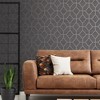 A full roll of this product is 20.5 inches wide and 396 inches long. A full roll can cover up to 56 square feet depending on the design match and pattern repeat. A sample of this product is 8 inches by 11 inches. Draw attention to your walls with this gorgeous geometric wallpaper. The heavyweight texture and dark grey colorway provide a high quality, luxurious look. This contemporary design is embellished with metallic gold accents that beam with sophistication and style. Offers a smooth, untextured finish. Straight match with a 25.2 inch pattern repeat.