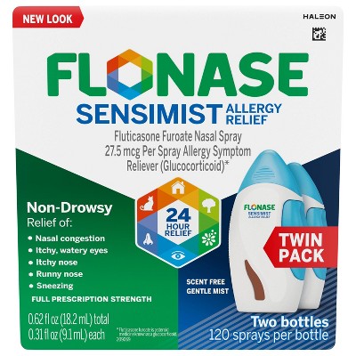 - Only 24-hour steroid-free nasal spray for allergy relief (among over the counter products)