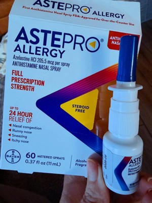 - Astepro allergy relief nasal spray provides up to 24-hour relief of nasal congestion, runny nose, sneezing and itchy nose