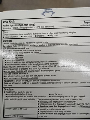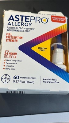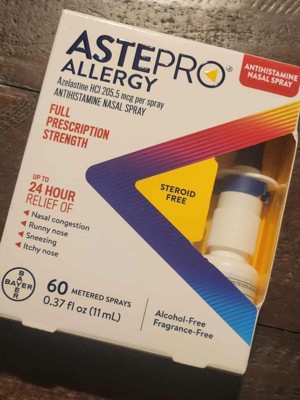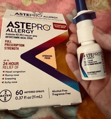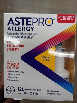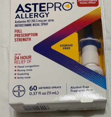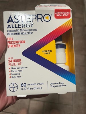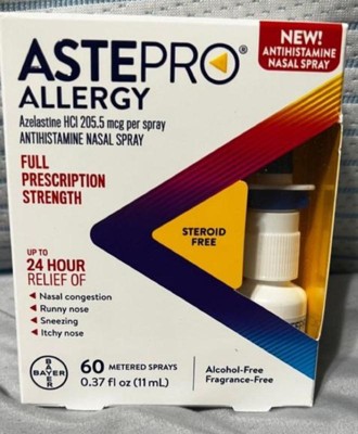- Astepro allergy relief nasal spray provides up to 24-hour relief of nasal congestion, runny nose, sneezing and itchy nose