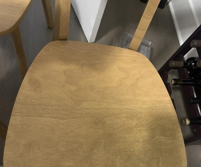 My order arrived with the seat wood cracked/ split and there was a weird stain on one of the chairs which made it look dirty.