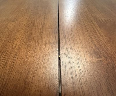 Beautiful table but too many flaws in mine. 1. The leaf is cut uneven so one side has a gap and doesn’t sit flush. Looks bad. 2. Strange piece on the top is discolored 3. There is a ding on the top