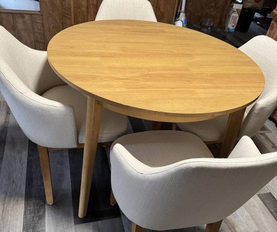 I was looking for a smaller rounded table that could fit 4-6. This table ended up working perfectly! It does scratch easily though.
