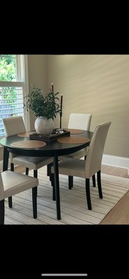 This table is praised for its great quality, ease of assembly, and stylish design. It fits well in small spaces and offers versatility with a removable leaf. However, some guests noted issues with color discrepancies and susceptibility to scratches. Overall, it is a solid choice for those seeking a functional and aesthetically pleasing table for smaller dining areas.