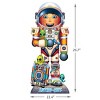 ASTRO-NUT, an astronaut, nutcracker ready to explore from Boardwalk(R) Wooden Puzzles. Astro-Nut takes you deep into space. Join this young explorer in navigating the cosmic expanse to see what lies beyond. He's picked up a few playful green friends along the way. Let's hope they don't eat through his spacesuit. Won't you join him on an interstellar adventure? Astro-Nut has an irregular edge and is cut in the shape of a nutcracker. Each Boardwalk Wooden Puzzle is hand-finished and packed with cleverly designed Playful Pieces(R). Fun for adults and children, our puzzles are available in five sizes. Proudly made in the USA.