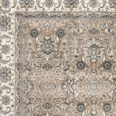 Adorned in a harmonious taupe and blue color palette, this rug showcases an intricate pattern that draws inspiration from classic designs. The detailed florals and ornamental motifs are beautifully nuanced, providing depth and a sense of antiquity to the piece.