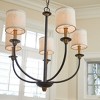 Elegant fixture. The gold accents really give it a high end quality. Shades are sturdy and fixed in. place.