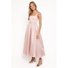 Get ready to turn heads in the Augustine Midi Dress. This stunning dusty pink number is your new go-to for any special occasion. It features a classic square neckline and a pleated A-line skirt that creates a beautiful, flowing silhouette as you move.