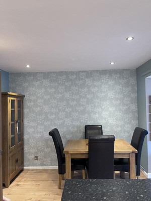 The paper has now up and looks good - pattern above the rail and plain below. Buying a quality paper and pasting the walls made life simple for the decorator. Will look at the web site for future projects.