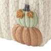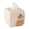 The Avanti Grateful Patch Tissue Box Cover features two stacked textured pumpkins in light orange and aqua on the front of the faux carved wood, off-white with brown accent base. Made of durable, hand-painted resin for easy care and long life. Measures W 6.13" x L 6.75" x H 6". Coordinating towels, rug, shower curtain, bath accessories, table linens and bedding also available. The perfect addition to any décor and any bedroom, bathroom, kitchen, office.