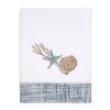 The Avanti Stone Harbor White 3-Piece Towel Set features an embroidered shell and coral design in blue, taupe and tan. The bath and hand towels are finished with a blue and white textured fabric with real shell trim on the bath. Set includes one bath (27"x50"), hand (16"x30") and fingertip (11"x18") towel. The velour finish provides a smooth, velvety feel with a subtle sheen.