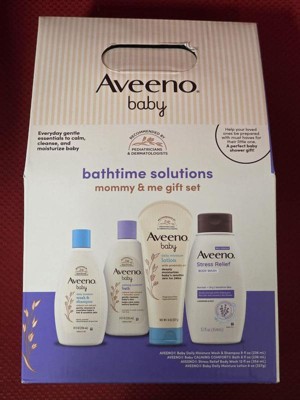 Aveeno Baby & Me Daily Bathtime Solutions Gift Set Includes Baby Wash, Shampoo,Calming Bath and Moisturizing Lotion - 4ct