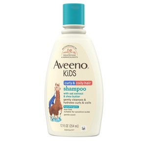 - Aveeno Kids Curly & Coily Hair Shampoo + oat extract & shea butter to nourish & hydrate curly & coily hair