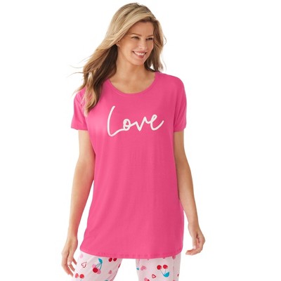 Even the frostiest of nights won't stand between you and snoozing in the Slogan Sleep Top. Featuring a relaxed, V-neckline fit sure to keep you warm, this season-inspired sleep top is perfect for cuddling up by the fire. Key Features Include:- V-neckline- 3/4 length sleeves- Relaxed pull-on fit- Lyric slogan print with silver foil snowflakes- Straight hemline at kneesPair with cozy slippers and an oversized sweater for toasty comfort all night long.60% Cotton, 40% Viscose. Fabric has stretch.MACHINE WASH COLD GENTLE CYCLE DO NOT BLEACH TUMBLE DRY LOWImported.