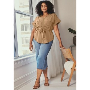 This washed satin utility blouse blends a polished look with functional details for effortless everyday wear. Designed with a flattering V-neck zipper front, dolman sleeves, and chest pockets with flaps, it offers a modern take on safari-inspired style. A drawstring waist and curved hem complete the look, creating an easy, adjustable fit with subtle structure.