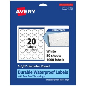 Avery Durable Waterproof Round Labels with Sure Feed, 1-5/8" diameter