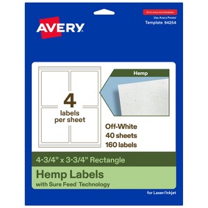 Bring your bakery labels, coffee and tea labels, candle labels, and more to life with customizable Avery 4.75" x 3.75" Rectangle Hemp Labels. Made with 25% hemp fiber and 75% recycled paper, these sticker labels bring sustainability and style together in one thoughtful design. The unbleached kraft label liner helps conserve resources and limit chemical processing, while the off-white, speckled appearance offers an organic, handcrafted look. Backed by permanent adhesive, labels stay in place without lifting or peeling; plus, it is recycling compatible so it won't interfere with the paper recycling process. With Pop-Up Edge technology, label edges lift for easy peeling and a faster application. Sure Feed technology reduces jams or misalignments by creating a more reliable printer feed. The print-to-the-edge layout lets you create bold, full-bleed designs. Optimized for laser and inkjet printers, each 8.5" x 11" sheet provides clean, consistent results for reliable printing performance.