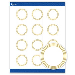 Pre-printed with beautiful designs, Avery Round 2" Diameter Matte White Labels with the Multi-Lined Gold Border Design help save ink and also elevate your branding and events. Pre-designed and printed with metallic gold ink with high-quality printers, these shiny patterns will definitely stand out and are not easily achieved with desktop printers. These pre-printed embellishments also help save your printer ink so that you only need to print your customizable information. Mix and match these labels with other Avery products from the same collection that have the same pre-printed design to create a cohesive look. Featuring the helpful Pop-Up Edge technology to help lift and peel labels quickly, these permanent-adhesive labels are great for product labels, care instructions labels, ingredient labels, and more. The versatile matte white material is a great solution for any project.
