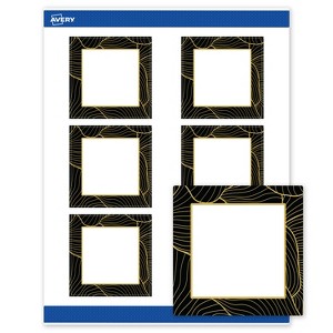 Elevate your branding or event with Avery Square 3" x 3" Matte White Labels featuring the Black Border with Gold Veins design. These premium labels are pre-printed with elegant, metallic gold accents that standard desktop printers simply can't replicate, giving your business or event an instant upgrade. With a design already pre-printed, you can easily customize the blank space while using less ink—just personalize and print. For a cohesive look, pair these labels with other Avery products in the same design collection. Featuring convenient Pop-Up Edge technology for faster peeling, these permanent customizable labels apply smoothly and stay securely in place. The smooth matte white finish delivers clean, versatile results. Built-in Sure Feed technology helps reduce printer jams by creating a more reliable feed through your printer. Search Avery Presta Template S00-ETD, and use Avery Design & Print to add your own logo, text, and artwork for a personal touch.